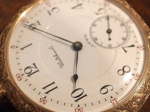 | コメント | 初期のウォルサム社が製作しましたリバーサイドマキシマスとなります。 モデル1888のリバーサイドマキシマスは最高級の時計。 後年のマキシマスも素晴らしい出来ですが、この1888は初期のアメリカ時計の素晴らしさを感じて頂けます。 ダイアモンドエンドストーン、ブリツジ形状、言う事は無いですね。 そしてこの時計のケースがもう1つの見所。 当時の職人がケース全面に彫金を施しており、見事な出来でこれも最高峰の職人技。 彫金のすり減りも殆ど見られ無く非常に良い状態、よくぞ残っていてくれたと思います。 ケースだけでも価値がありますね。 当店にて完全分解整備済み、ご安心してこの素晴らしい時計をお楽しみ頂けます。 見所満載の時計は最強! |