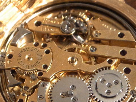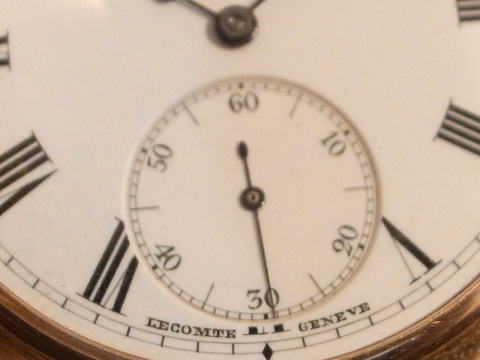 | コメント | スイスの Le Comte Geneve が製作しました、ファイブミニッツリピーターです。 何と全てスイス製でありながら、イングリッシュレバー脱進機! この組み合わせは決して見られませんね。 懐中時計の奥深さを感じて頂けます。 Wm Mcgregor Edinburgh(エディンバラ) で販売されたこの時計は極めて珍しい時計。 イギリスで販売する為に、スイス製の機械をわざわざイングリッシュレバー仕様に変更せざるを得ないのは、 歴史的な背景があった事でしょう。 因みに Le Comte の歴史ですが、 1800年創業は判明しているのですが、 残念ながら資料がほぼ残っておりません。 またこの時計はケース径が40.5mm(リューズ含まず)と非常に小さいサイズで、何と総重量は69g! 機械の変更点と言い、サイズと言い何とも凄い時計を製作したものです。 製作年代は1880年前後でしょうから、当時で腕時計サイズとなりますと、 製作は極めて困難だった筈。 ですのでそれだけ技術力が高かったと言えますね。 文字盤、ケース、機械に L C (Le Comte略)の刻印。 当店にて完全分解整備済み、ご安心してこの素晴らしい時計をお楽しみ頂けます。 超が付く極めてく珍しい時計は、凄過ぎ! |
