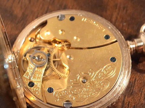 | コメント | ウォルサムが製造しました懐中時計となります。 何と言いましてもケースの彫金が素晴らしく、実際に見ると見事ですね。 表蓋、裏蓋そしてケースサイドにもあるのは珍しい、殆どが表蓋と裏蓋のみです。 そして裏蓋にはダイアが3個はめ込まれております。 かつてこの様に小型の時計でも、アメリカ時計は贅沢に製作されておりました。 当店にて完全分解整備済み、末永くお楽しみ頂けます。 これは良い時計です! |