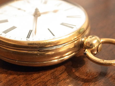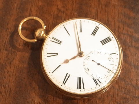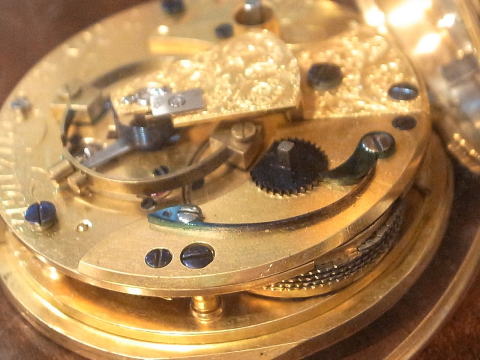 | コメント | イギリスのBissettが製作しました、デテントクロノメーターとなります。 何と言いましても機械が凄すぎ、見所満載と言った所でしょう。 提灯ヒゲは勿論ですが、天輪にあります重り、これを見ているだけでも楽しめます。 このタイプのデテントクロノメーターは他の時計とは全く違う時計と言って良い。 実際の時計も大きく分厚く、抜群の存在感を感じて頂けます。 Bissettはロンドンで1815年から24年となります。 ホールマークからは1825年製造ですので最終年に製作したのでしょう。 何と丁度200年前! 100年では無く200年ですから懐中時計の歴史は本当に長く奥が深い。 まさに歴史を感じて頂けるとは、この様な事でしょうね。 当店にて完全分解整備済み、ご安心してこの素晴らしい時計をお楽しみ頂けます。 凄まじく最強の時計で破壊力抜群です! |