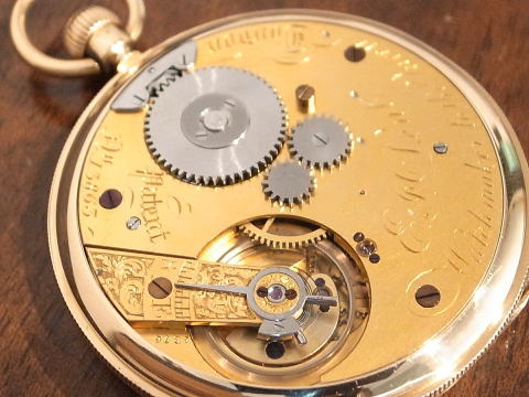 | コメント | E J DENT社が製作した時計となります。 何と言いましても、初期のリューズ巻き機構を使用し脱進機もデュプレックス。 素晴らしいではないですか。 イギリスの初期のリューズ巻き機構は、ニコルニールセンが第一人者。 独特のムーブメントは、他と全く違いますので見ていて飽きませんね。 そして脱進機もデュプレックス。 デテントクロノメーターの様に脱進しますが全く違います。 また、秒針も位置も9時に有りますので、これはこれで良いですね。 当店にて完全分解整備済み、この素晴らしい時計を末永くお楽しみ頂けます。 DENTとニールセンが組み合わさればこれで決まりでしょう! |