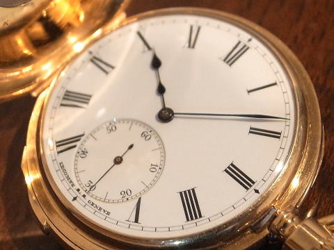 | コメント | スイスの Le Comte Geneve が製作しました、ファイブミニッツリピーターです。 何と全てスイス製でありながら、イングリッシュレバー脱進機! この組み合わせは決して見られませんね。 懐中時計の奥深さを感じて頂けます。 Wm Mcgregor Edinburgh(エディンバラ) で販売されたこの時計は極めて珍しい時計。 イギリスで販売する為に、スイス製の機械をわざわざイングリッシュレバー仕様に変更せざるを得ないのは、 歴史的な背景があった事でしょう。 因みに Le Comte の歴史ですが、 1800年創業は判明しているのですが、 残念ながら資料がほぼ残っておりません。 またこの時計はケース径が40.5mm(リューズ含まず)と非常に小さいサイズで、何と総重量は69g! 機械の変更点と言い、サイズと言い何とも凄い時計を製作したものです。 製作年代は1880年前後でしょうから、当時で腕時計サイズとなりますと、 製作は極めて困難だった筈。 ですのでそれだけ技術力が高かったと言えますね。 文字盤、ケース、機械に L C (Le Comte略)の刻印。 当店にて完全分解整備済み、ご安心してこの素晴らしい時計をお楽しみ頂けます。 超が付く極めてく珍しい時計は、凄過ぎ! |