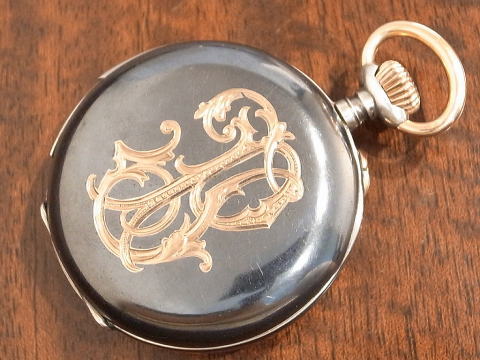 | コメント | 恐らくスイス製のミニッツリピーター懐中時計となります。 何と言いましてもケースにニエロ(象嵌)を使用し、ボウ、ネイルセット、ケース裏の文字が 金無垢を使用すると言う贅沢な時計。 刻印等はありませんが、機械はルクルト系の機械で間違い無いでしょう。 ニエロは勿論ですが、機械も超一級品を使用しておりますので、当時特注したと思うのが普通。 文字盤下の機械を見て頂くと最高級と解ります。 手に持ちますと、かなりの時計と感じて頂ける逸品ですので、 十二分に懐中時計の歴史などもお楽しみ頂けます。 当店にて完全分解整備済み、ハンマー、ネジ頭等々を研磨し直して有りますので、 言う事は無いでしょう。 梨地ブリッジも実際には遥かに画像よりも良い状態、輝きが違います。 お勧めの逸品! |