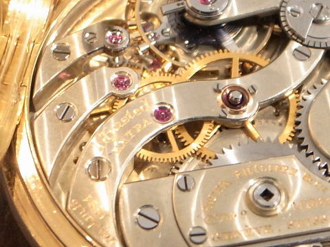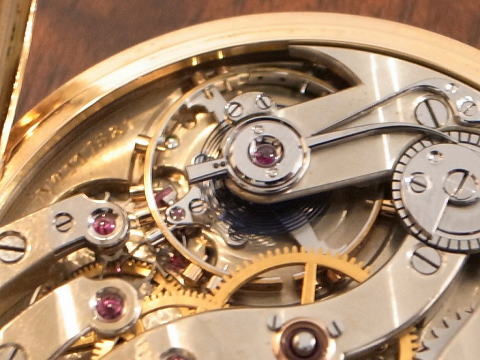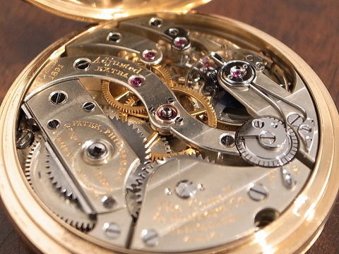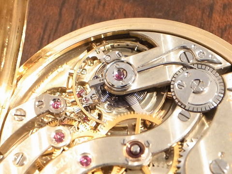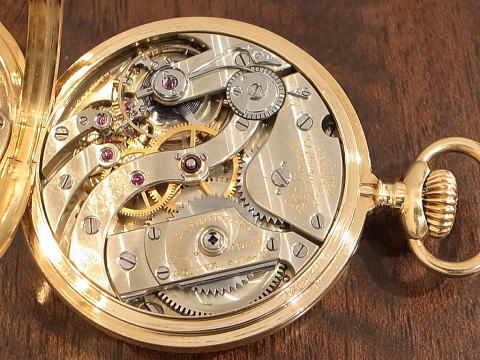 | コメント | パテックフィリップ社の天文台ラインにて製造された懐中時計です。 ご存知の方も多いと思いますが、天文台に出品していた時計は通常とは違う特別なラインにて 製造されておりました。 その中で成績の良い物を天文台に出品しておりましたが、勿論出品されなかった時計もあります。 しかしながらその差は極々僅かで仕様なども同じで品質などは変わりません。 今回の時計は出品されてない時計となります。 ギョームバランス、2対のプラチナスクリュー、EXTRAとテンプ横に番号が刻印され、 素晴らしいと言う言葉が相応しい。 リューズもエイドリアン フィリップが特許を取得しました、ジョイント式のリューズを採用している辺りは 当時パテックフィリップ社の最高級の出来であったのは容易に推測が出来ます。 機械は言うに及ばず、美しい金無垢ルイ針など、いわゆる物が語ると言う典型的な時計でしょう。 時代に伴う小傷、過去のメンテナンスに伴う小傷等ありますが、当店にてオーバーホール済みですのでご安心して この素晴らしい時計をお楽しみ頂けます。 パテックフィリップの天文台クォリティーは間違い無く極上でしょう! 普段使いには最高ではないでしょうか。 |