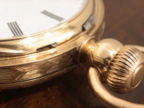| コメント | アメリカ ウォルサム社の18金無垢懐中時計です。 非常に貴重な時計で有るのは言うまでも無く、 元々は鍵巻き鍵時刻合わせとして販売された物を 当時所有しておりました方の希望によりリューズ巻き上げレバーセットに換装された現物。 鍵巻きが普通の時代でありましたので、リューズ巻き上げへの変換期であります。 換装された所にはアボットパテントの刻印が見えます、アボットは当時ウォルサム、ハワードなどに この機構を販売しておりました。 ヨーロッパでリューズ巻き上げ機構が発明され、その時代の流れは当然アメリカにも来ますので 歴史を楽しめる典型的な懐中時計とも言えます。 この時計はリューズ巻き上げも出来ますし、勿論鍵で巻く事も可能。 時刻も文字盤側から鍵で合わせれ、レバーセット合わせも出来ますので、ある意味機能として最高ではないでしょうか。 しかもオリジナルの18金無垢ケース、針が残っているだけでも素晴らしい。 なかなかある様でありません。 ケースも全面に彫金が奇麗に施されており極上。 時代に伴う小傷、過去のメンテナンスに伴う小傷等はありますが、当店にてオーバーホール済みですので ご安心してお楽しみ頂ける事でしょう。 文字盤には非常に薄いヘアーラインがありますが非常に薄いので気にならないと思います。 何と言いましても初期のリューズ巻き上げ機構を所有できる喜びは懐中時計の醍醐味でしょう! 非常に興味深く、資料としても一級品ですので間違い無くお勧めです! |