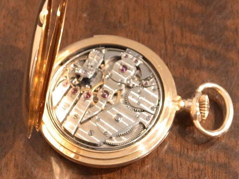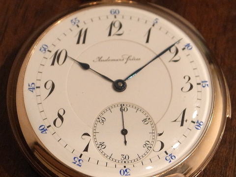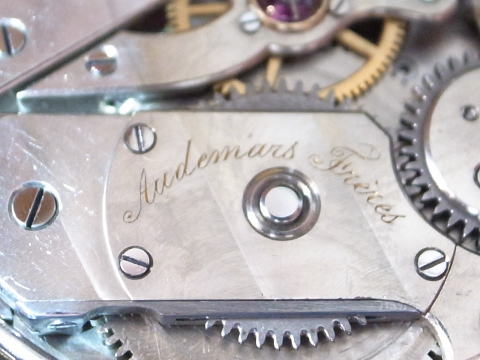 | コメント | オーデマフレーレ社が製作しました、ミニッツリピーターとなります。 当時ルイオーデマからオーデマピゲ、オーデマフレーレが誕生しその後、 オーデマピゲのみになり現在に至ります。 オーデマフレーレはノーマルから最高級ラインを製作しており、この時計も最高級です。 テンプなどを見て頂くと解りますが、ルイオーデマに繋がっているのが良くわかります。 オーデマピゲもこの形状を製作していた辺りは興味深い。 恐らくムーブメントを提供してもらったのかも知れません。 元は同じですので当然と言えば当然でしょうね。 何れにしましても、オーデマ名は貴重です。 文字盤、ケース、機械にオーデマフレーレーの刻印。 現代で言う所謂トリプルサインでしょうか。 文字盤外周の青色が良いですね。 当店にて完全分解整備済み、末永くお楽しみ頂けることでしょう。 これでしょう! |