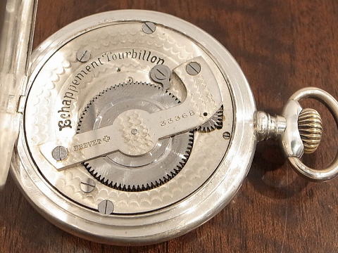 | コメント | 非常に、いえ極めて珍しい、フォーミニッツトゥールビヨン。 何と4分で一周すると言う、通常は1分ですが、この4分という時計はかなりレアで興味深い時計。 ブレゲがフォーミニッツトゥールビヨン、シックスミニッツトゥールビヨンを製作しておりましたが 後年でこのタイプのフォーミニッツトゥールビヨンは、まず見る事も無いでしょう。 このタイプは間違い無く極々僅かに製作されたのみで、現代に残っているのは果たし世界でもどれ位でしょうか。 数個も無いのは確実でしょう。 メーカー刻印などは無いですが、恐らくMobilisのワンミニッツトゥールビヨンと制作された所は同じと考えられます。 大きな丸い円盤がゆっくりカチカチと回るのを見ていると、懐中時計の奥深さを再認識出来、 実際に手に持つと、その大きな円盤が回っている為に、大きな振動が伝わって来ます。 明らかに通常のトゥールビヨンと違うのは直ぐに解ります。 こう言う時計は、まさしく持つ者だけが楽しめるタイプですね。 時代に伴う小傷、過去のメンテナンスに伴う小傷等ありますが、当店にて完全分解調整済みですのでご安心して この非常にレアな時計をお楽しみ頂ける事でしょう。 世界でもまず見る事の無いフォーミニッツトゥールビヨンは抜群です! |