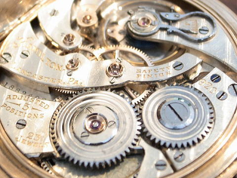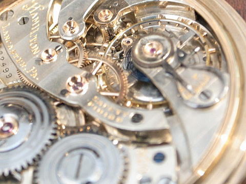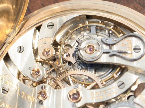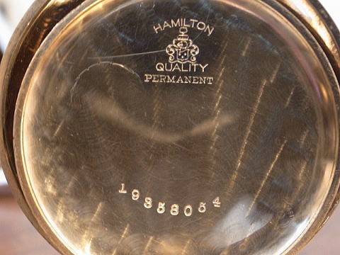 | コメント | ハミルトン社を代表する高級機、920です。 香箱芯にも上下ルビーがはめてある辺りは流石に920、機械が素晴らしいの一言。 金無垢輪列(ゴールドトレイン)2番3番4番車は当然としてですがシャトン、アンクル受け、ガンギ受け、チラネジも金無垢。 非常に豪華な作りで、ハミルトン 950 と同じく当時のアメリカ時計における最高級の作りであるのが解ります。 機械には時代に伴う小傷、過去のメンテナンスに伴う小傷等はあります。 ケースに小傷、裏蓋に本当に僅かの凹み、金張りが薄くなっている所はありますが、 やはりハミルトン社を代表する高級機 920は素晴らしく質が非常に高いですのでお勧めです。 僅かにうっすらとヘアーラインがありますが見えない位の物。 当店にてオーバーホール済みです。 日差1分以内ですので普段使いにも最適。 所有しますと満足感の非常に高い時計でしょう。 |