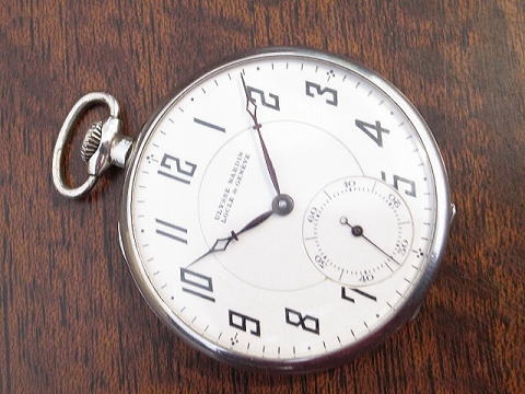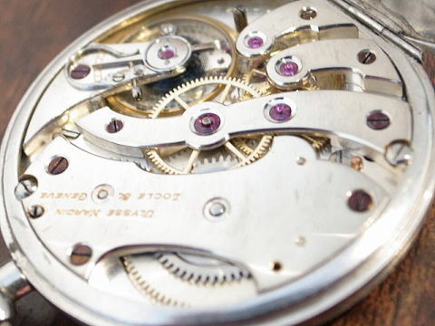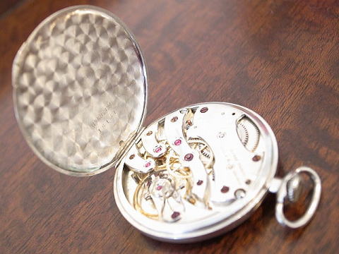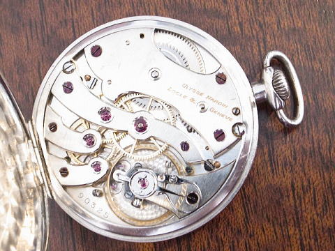 | コメント | ユリス ナルダンのプラチナ懐中時計です。 ユリスナルダンは非常に高品質な時計を製作しており、特にクロノメーターで有名。 こちらの時計も薄型で高品質な時計です。 元箱、証明書、チェーン(クロム製)メダルのセットですので珍しく、チェーンには内閣と昭和5年の国勢調査とあります。 なかなかこれも興味深く歴史を感じ取れて面白い。メダルの材質は不明。 証明書も珍品で、製造番号が修正されております。 箱、証明書には当時購入された方の印でしょうか、が見て取れます。 プラチナはかつてPtとPmの両方が刻印されていて、ナルダンのPm刻印は珍しい。 箱に若干の傷み、ケースにはあたりが若干見られますが、時代を考慮しましても良い状態です。 当店にてオーバーホール済みですので安心してお楽しみ頂けます。 文字盤、機械も非常に綺麗、また時代を見て取れます印、メダル等が付属しますのでお勧めです。 |