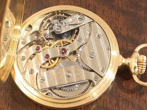 | コメント | ジュネーブ天文台に出品されましたパテックフィリップの懐中時計です。 何と言いましても天文台出品作品、本物はやはり一味も二味も違います。 機械は勿論ダイアモンドエンドストーンが標準装備、ギョームテンプに大きなプラチナスクリュー等々 素晴らしいの一言ですので間違いありません。 因みにこの時計の歴史ですが、1907年製造~天文台出品1908年~1909年9月24日販売となります。 恐らく1909年の飛行機もしくは気球の大会で優勝なりをした人へのプレゼント、 もしくはメダルとして授与されたのかもしれません。 上記の歴史の流れからしますと非常に面白く興味深い。 Gordon Bennet Cup は現在でも行われている様でして、仮に飛行機の大会で優勝者に贈られたのでしたら グレンカーチスとなります。 非常に有名な方ですので流石に感慨深い。 欧米では飛行機、飛行船、気球の文化があり、またレースと天文台が繋がる辺りも面白く、 この辺りは懐中時計ならではの広大な歴史。 楽しみ方は無限でしょう。 またパテックフィリップのアーカイブにも裏蓋のエナメルに関して記載がありますので、 当時レースに関係した特注品で間違いありません。 時代に伴う小傷、過去のメンテナンスに伴う小傷は僅かにありますが、 当店にて完全分解調整済みですのでご安心してこの素晴らしい時計をお楽しみ頂けます。 パテックフィリップのオールオリジナル、最高級品は言う事は無いでしょう! |