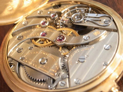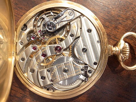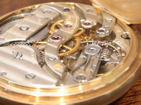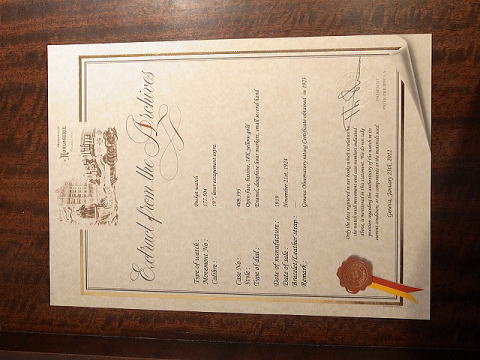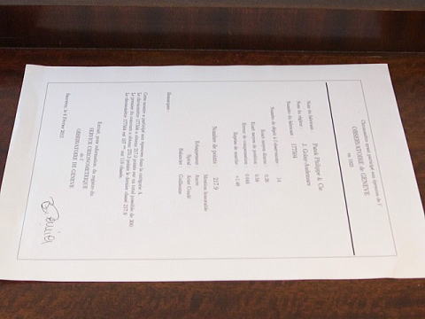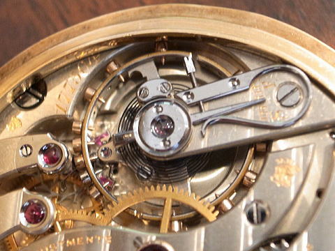 | コメント | 素晴らしいパテック フィリップEXTRA懐中時計、天文台出品作品をご紹介致します。 EXTRA、ジュネーブシール2ヵ所、地板に刻印、ギョームテンプ、プラチナスミーンタイムクリュー、隠しヒンジ、リップリッド等全てにおいて超一級品。 ウルフティースワインディングギア、ギアのラチェット(コハゼ部)も見られない希少タイプ、金無垢輪列は当然としてパーツの面取りが素晴らしい。 金無垢ボウ(ワッカ)にもPPC刻印。 EXTRA更にジュネーブシールが2ヵ所、地板に数字刻印は市場では見られません。 天文台時計でジュネーブシール刻印はレア。 地板、アンクル受けも驚くほど非常に分厚い。 何と文字盤裏にもPPCが書かれている仕様。 此処まで揃った仕様はまず見る事が無く全てがオリジナル、ケースもパテック製作品。 完璧です。 1923年度のジュネーブ天文台出品作品です。パテックのアーカイブにも記載されており、天文台の証明書も取得済み。 天文台出品の時計は珍しく、数は限りなく少ないので超希少品と言うのは言うまでも無い。 調整した人も J. Golay-Audemars。 パテックフィリップの天文台担当のマスターアジャスターで歴史本にも載っている程の人の調整品。 トゥールビヨン等の超複雑時計も彼が調整しております。 因みにこの時計の歴史は、1919年製造→1923年天文台出品→1924年11月21日販売。 中蓋にも地板の刻印と同じナンバーが打たれていて特注と言うのは直ぐに解り、手に持って頂くとズッシリと重みを感じれます。 贅沢に非常に多くの金を使用している。 当時ノーマル3針の数倍で販売されたこの時計は、現代にあっても超希少かつ超高級品。 状態は時代に伴う小傷は僅かにありますがケースに磨り減りも無く、既に説明の必要が無く物が語るとはこの事でしょう。 分針の先が本当に僅かに傷んでおりますが、この様な時計にありましては気にならない筈ですし、気にする事も無いでしょう。 過去の戦争による紛失、壊れた事により廃棄等、世界中で天文台出品作の現存数自体限りなく少なく、 パテックフィリップ名のみで考えて見ますとどれ位が現存している事か、その内の一つ。 しかも極上の状態。 この様に全ての仕様に最高級の物は見る事はありません。 時計、パテックフィリップアーカイブ、ジュネーブ天文台証明書全てが揃った逸品。 参考資料として載せておりますがパテックフィリップミュージアムにありますヘンリーグレーブスJrがかつて所有していた天文台時計と同じ仕様で、 このギアのラチェット(コハゼ部)が通常とは違うタイプは更に貴重。 この様に同タイプと言う事は特別な人の注文と判断がつきます。 製作ライン上同じパーツを使用出来ない為に、僅かに一ヶ所違う仕様を取り入れるだけでも非常に手間、コストが掛りますので 同じ天文台の中でも更に高額品であったであろうと解ります。 パテックフィリップの歴史を所有出来ると言う事は素晴らしい喜びです。 探しても見つかる物ではありません。 |