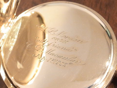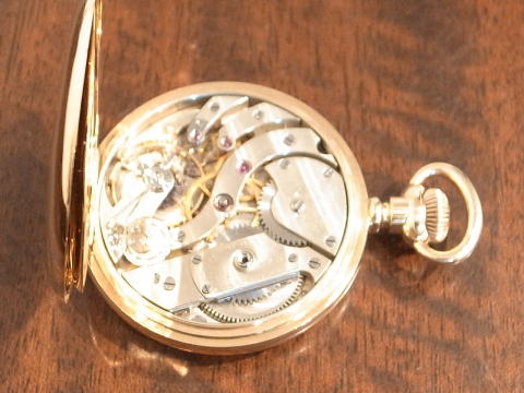 | コメント | パテックフィリップ社が製作しました懐中時計となります。 当時カナダの販売店でありました、RYRIE BROS社がアメリカのケースを用いて販売しました。 何と言いましても、パテックフィリップでは珍しいフルハンター時計。 多くはオープンフェースですので、ハンターケースは貴重。 1902年の7月1日の記載が中蓋にありますので、約121年前! 色々と想像出来るのも懐中時計ならではで面白い。 醍醐味ですね。 当店にて完全分解整備済み、末永くお楽しみ頂けます。 これで決まりでしょう! |