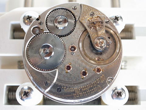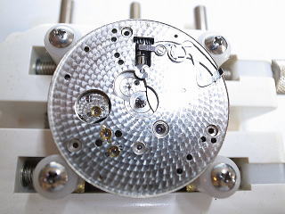 各部洗浄、調整、注油、ゼンマイ交換、振り石調整等を行い、その後組上げて無事にテンプが振れる様になりました。