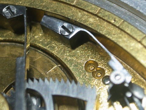 | ミニッツリピーターのゴングを押さえるバネ部が壊れておりましたので部品製作となりました。 生の鋼を以前の部品と同一に削り出していきます、特に薄い部分は慎重さが大事です。 厚さ大きさ等を均等に削り出して行き、出来上がりましたのを取り付け確認いたします。 ネジ穴の位置も慎重に。 その後鋼を焼き入れ焼き戻しをし、磨きをかけて完成です。 元々の非常に薄い部分が根元から壊れており、残念ながらミニッツを数えない状態で有りました。 これでミニッツもカウントされ解決です。 特にこの様に非常に薄く焼き入れ前の部品製作には、削る際の力加減がj大切です。 厚さを均等に致しますので、少しの加減違いで折れたり壊れてしまうので、また一から作り直しとなります。 一からのやり直しは、それまでに製作に費やした時間が勿体ない! ですが部品製作は根気ですね。 |
