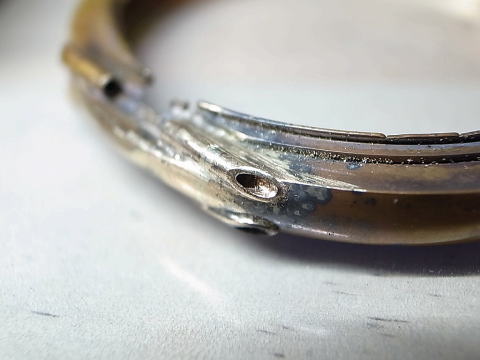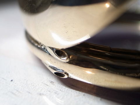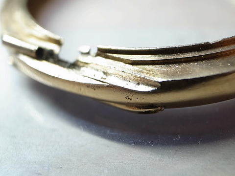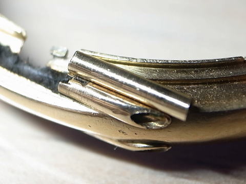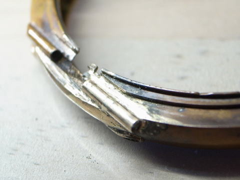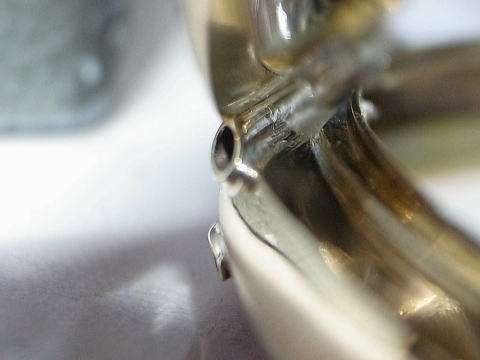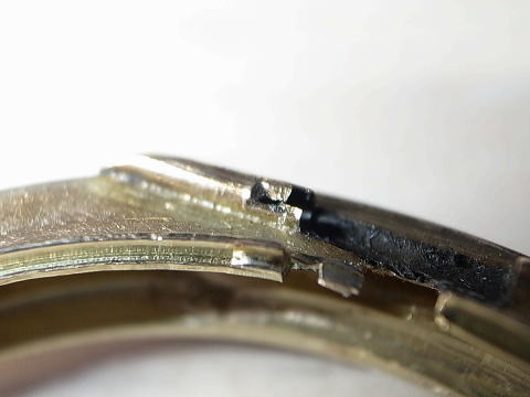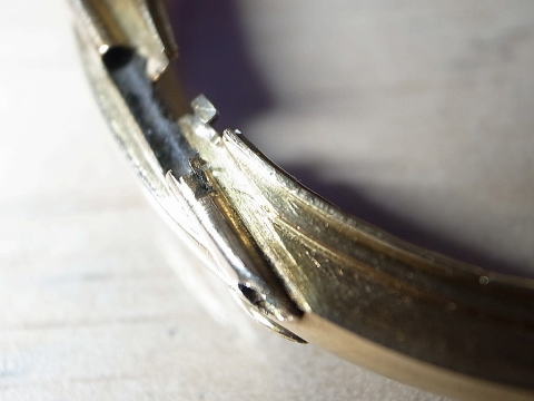 | 歯車の新規製作となります。 元々が壊れており比較の画像でも見て頂けますが、このままでは勿論動きません。 画像ではあくまで簡単に説明しておりますが、この他にも厚み、ラチェットを嵌め込む部分には逆テーパー、 製作した歯車と重ねる歯車には隙間が必要ですのでその加工などなど様々な工程があります。 中央に開けます穴も、厳密にセンターを合わせなければなりません。 センターが合っていないと回転する時に 綺麗な円を描きませんので完璧さが求められます。 また、取り付けた後に他の歯車との接触などを見て行きますので、この部品1つだけでもかなりの時間が 掛かるのがお解り頂けるかと思います。 新規製作しました歯車はいかにも歯が噛み合いそうで良いですね! これでまた何十年と使用出来ます。 さて、100年前の懐中時計では、この様なパイプの製作方法では無い時も多くありました。 懐中時計では無く、現代の彫金作業でも同じ様なパイプの製作方法は行われている時もありますが、 当時を推測しますと、一度に多く(長く)を製作する、切開工具の質、等々の理由も関係して来たので、 工場の作業効率などで製作方法が違ってくるのは面白い所です。 結論としては、良い物が出来れば良いと言う事でしょうね。 |