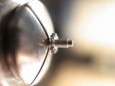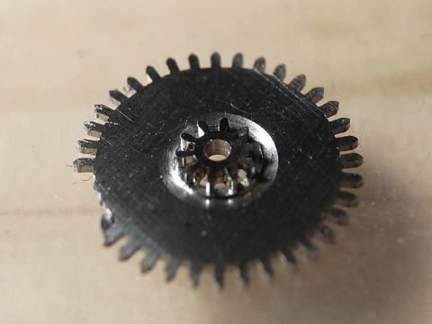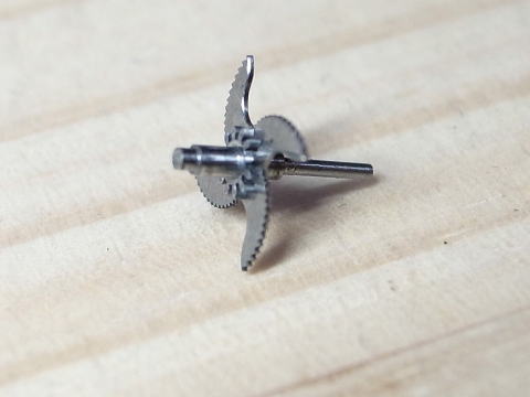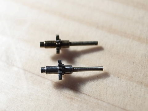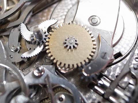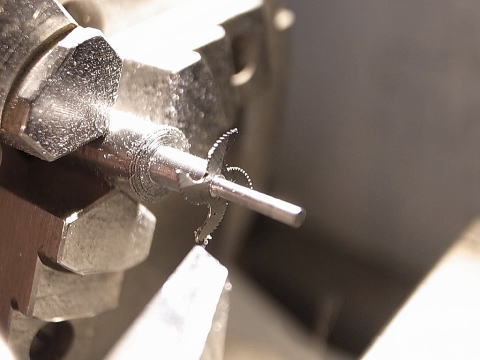 | ミニッツリピーターの修理画像となります。 歯車の歯が2個とも折れてしまっていますので、新規製作は必須。 初めに鋼から元の部品と同じ寸法で完璧に製作して行きます。 高さ、大きさ、厚み等々が違いますと使用できません。 例えば高さなどが少しでも違いますと他の部品全体に影響が出ますので完璧さが必要。 元のパーツは2個とも鋼で出来ておりましたが、今回の様に歯が両方共に折れた事を考慮した時に、 仮にまた折れてしまう事が起きた時には、片方の歯車のみがダメージを負うだけで、 もう片方はダメージを負わ無いと言う方が明らかに良い。 そう言う方向で考えますと当然片方の歯車は真鍮で製作した方が機械にとっても良いですし安全。 ですので仕様を変更しました。 元の仕様がどうしてもと言うのであれば、鋼で製作すれば良いだけの事です。 どちらのパーツも元のパーツと全く同じに製作し完成となります。 文章では短く簡単に説明をしておりますが、実際の作業はかなりの作業量を要しますのはご想像頂ける事でしょう。 |
