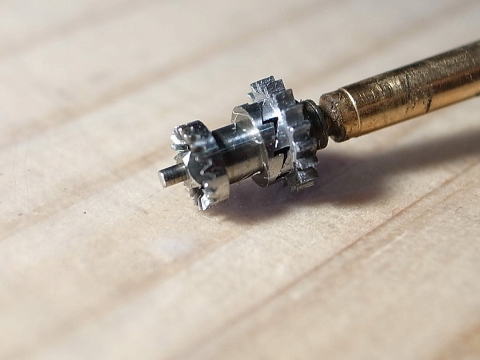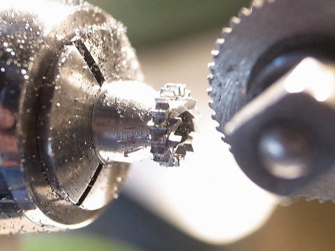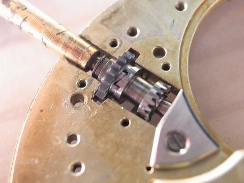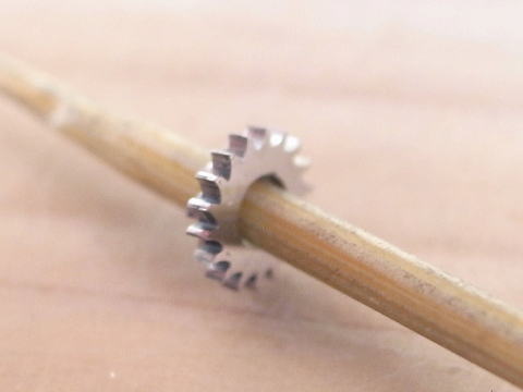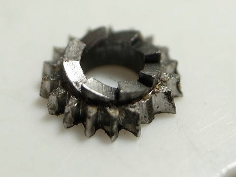 キチ車の修理となります。 歯が完全に折れており、巻き上げる事が出来ませんので新規製作は絶対です。 初めにウルフティース用のカッターから製作して行きます、その後歯をカットして行き、 ツヅミ車と噛み合う歯もカットして行きます。 焼き入れ焼き戻しを行い、研磨を施し完成です。 これで巻き上げが出来きますので、完全復活ですね。 かなり省略して説明をしておりますが、非常に手間、労力の掛かる部品であると言うのは、 画像を見て頂くとお解り頂ける事でしょう、間違い無く簡単には製作出来ません。 カットはただカットだけをすれば良いのでは無く、元のパーツ、地板との兼ね合いを考慮して 大きさ、厚みなどを完全に把握して製作して行きます。 |