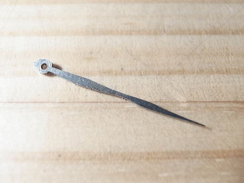長針、短針、秒針共に違いますので、オリジナルの形状と同じに製作して行きます。