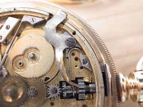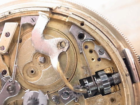 リューズセット部がなんと剣引きに無理矢理改造されており、流石にこれは良くありません。 大規模な改造を元に戻すと言いますのは、極めて多くの作業が必要なのは簡単に想像が出来る事でしょう。 相互作用する部品群を新規製作する場合、最終的にスムーズに動かない場合は再作成。 これは設計図が無い為に、ほぼ必ず起こることですので根気が必要となります。 仮に似たような資料等がありましても、参考程度で見る事と、実際に製作する事では天と地の差があります。 また、ただ製作すれば良いわけでは無く、周りの部品と同じクォリティーに製作することも重要。 所謂見た目ですね。 膨大な時間と労力を掛けて、最終的に完成となります。 最終的な形状は製作過程の中で若干違う時が出てくるのは当然の事となります。 なぜなら改造具合が大きければ大きいほど色々と影響が出てくるものです。 実際の作業は画像だけでは伝わら無く、書き切れないほどの作業量等々があります。 |