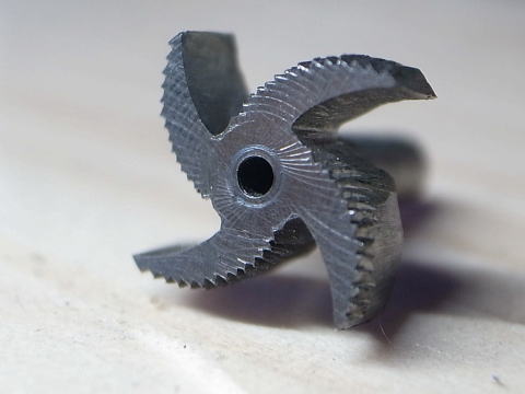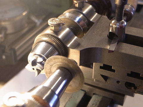 次にピニオン(歯車)の製作となります。 歯車の製作方法は何通りもありますが、今回はフライカッターでの製作です。 別作のカッターを製作した後に歯をカットして行き、出来上がりましたら焼き入れ焼き戻しを施し完成。 画像のみでは伝わりにくいのですが、歯の大きさ厚み、他のパーツとの兼ね合い等々、 全ての事柄を考慮して製作して行きますので、膨大な時間が掛かる作業となります。 |