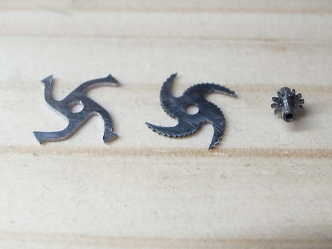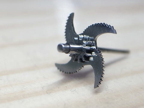 この様な超が付く複雑なパーツを新規製作する場合には、正確な設計図が必要なのは当然として オリジナルに製作した工具、旋盤、設備、知識等々、多くの時間、労力、そして根気が必要となります。 リピーターパーツもしくは時計の中でも一番の複雑さとも言えますので、妥協は出来ません。 センターの穴もパーフェクトでなければ再製作となります。 |