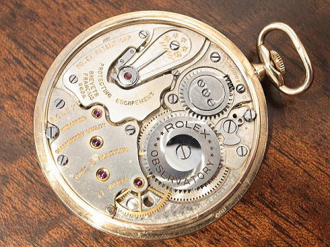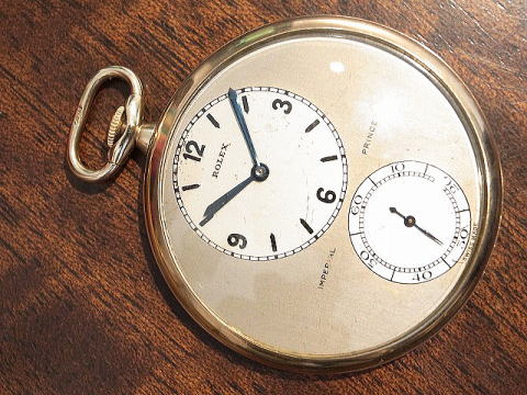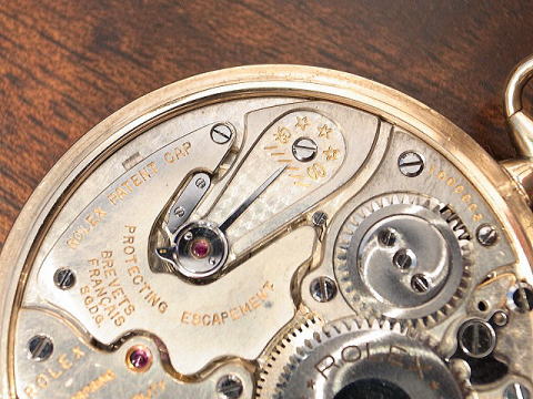 | コメント | 非常に珍しいロレックスの9金無垢懐中時計です。1920年頃の製作と思われます。 このタイプはご存知の方もいらっしゃる通り、ユールヤーゲンセンから供給された機械と言われている物です。 非常に出来が良く、ロレックスの懐中時計はその殆んどが並品です。 しかしながらこちらは高品質な機械であり 当時のロレックス懐中時計の最高級品であることは直ぐに解ります。 テンプを守る為にプレートをはめている辺りは非常に手の込んだ機械です。 機械にも,Observatory qualityと記載してあり天文台品質とあります。 角型タイプのプリンスは偶に見られますが、丸いタイプは角型ほど見られない為に希少品。 薄型の時計を製作するのには多くの手間暇が掛る事は現代の腕時計でも同じ。 その為に当時高額な時計でありました事は間違いありません。 現代で一番の人気であるロレックスも懐中時計の製作から始まったかもしれないと考えますと より希少さを感じて頂ける時計でしょう。現代では勿論懐中時計は製作されておりません。 約100年近くの経過に伴う小傷、過去のメンテナンスに伴う小傷はありますが、当店にてオーバーホール済みですので 安心してお楽しみ頂けます。 良い状態ですのでお勧めです。 |