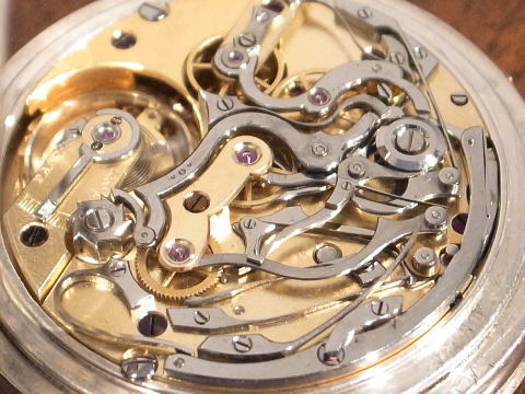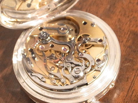 | コメント | イギリスの会社が製作しました、スプリットセコンドクロノグラフです。 メーカー名、もしくは工房名はありませんが、最高級の芸術的な機械。 これ以上の物は無いでしょう。 製作年代は1900年前後と思われますので、単純計算ですが約125年前! 機械は一目で解る複雑さですが、文字盤下も凄いです。 この時計は3時の位置に秒針、9時の位置に積算計。 普段見ます12時の位置に積算計と6時の位置に秒針とは明らかに違いますので、 これはこれで楽しめますね。 この違いは機械を製作する時に、もの凄く労力等々が必要なのは言うまでも無い。 ケースも大きく分厚く存在感が抜群。 当店にて完全分解整備済み、ご安心してお楽しみ頂けます。 これは極上時計です! |