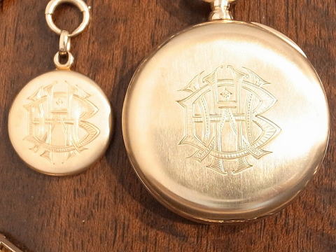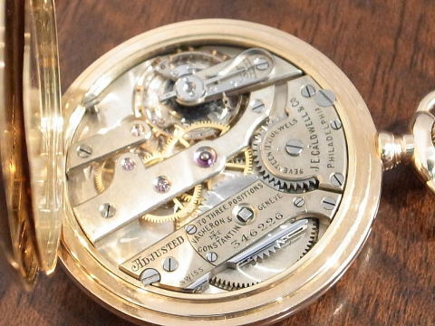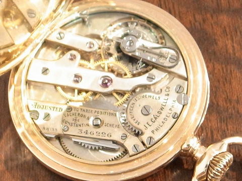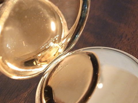 | コメント | バセロンコンスタンの14金無垢イエローゴールド、懐中時計となります。 何とオリジナルの14金無垢イエローゴールドフォブが付属し、 チェーンも14金無垢イエローゴールド。 チェーンがオリジナルかは解りませんが、後付でも素晴らしさに変わりはありません。 単体だけでもかなりの物です。 J E Caldwellに機械をバセロンが供給し製作されたこの時計は、当時の特注品で間違いありません。 非常に興味深い事に、ケースの裏側、フォブの裏蓋はマット仕上げを施している点。 製作年代は1900年から1920年辺りと思われます。 当店にて完全分解整備済み、チェーン付きですので普段使いには最適。 ネジ頭なども再研磨し、十二分にこの貴重なセットをお楽しみ頂ける事でしょう。 チェーンには数ヶ所補修、傷み等は見られますが、使用には全く問題ありません。 素晴らし過ぎ! |